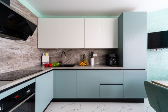 Если дополнить гарнитур рабочей поверхностью, то удастся сделать пространство более эргономичным.
