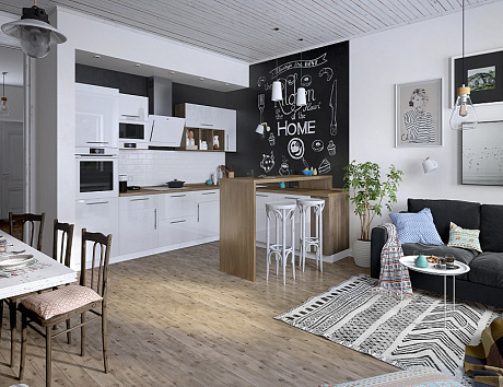 Белый цвет + натуральные древесные фактуры = Скандинавия! Такие замечательные варианты кухонь известны всем! Жизнерадостный и просторный стиль «сканди» по праву завоевал особое место в сердцах людей по всему миру. На таких кухнях дышится и готовится невероятно легко!