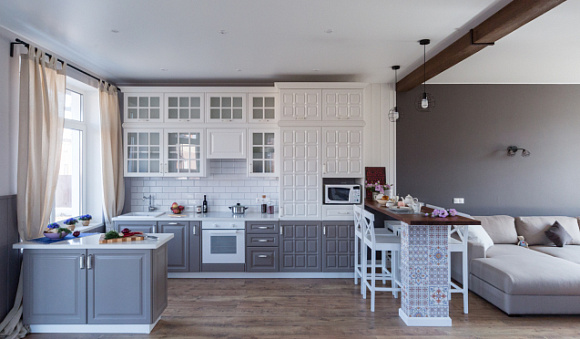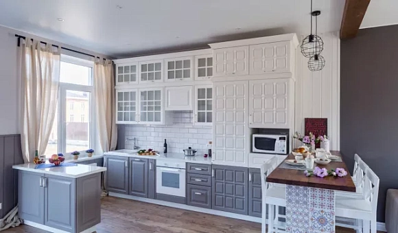 При выборе кухни в серых тонах, учитывайте ее стиль. Так, для просторной комнаты с высокими потолками и большими окнами подойдет классическая модель кухни. Подобные версии характеризуются симметричными линиями и гармоничными формами. Декорируют их патиной, позолотой, лепниной, резьбой и другими роскошными элементами.