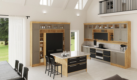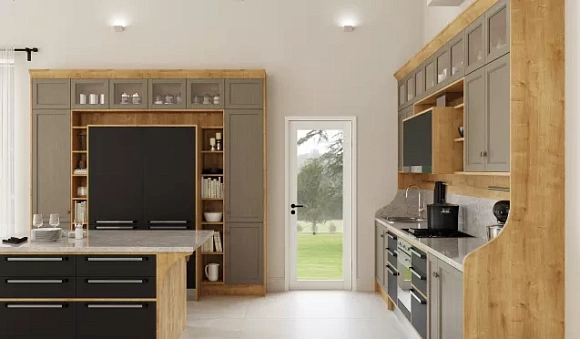 Микс эстетики в разнообразии стилистических направлений позволяет выбрать из представленного на рынке разнообразия конфигураций и цветов, не только классические и традиционные кухни в серых цветах, но и модели в духе авангардных решений. Мебельные фасады с контрастными вставками выглядят более интересно, при этом позволяют подчеркнуть свое отношение к актуальным трендам.