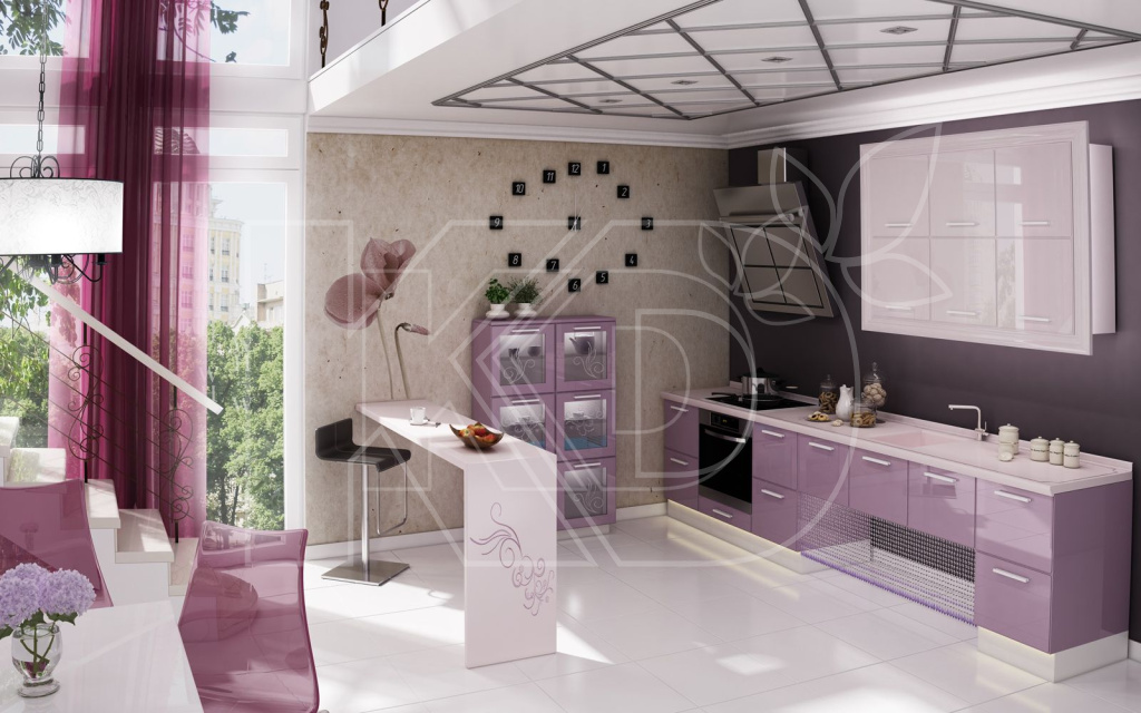 Привлекательная и модная серо-фиолетовая кухня станет настоящим украшением интерьера. Подобную расцветку выбирают люди с креативным мышлением, для которых важно подчеркнуть собственную индивидуальность.