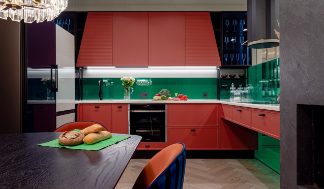 Красные кухни. Красный цвет ассоциируется с энергией, силой, могуществом. Когда дело доходит до дизайна с красным цветом, оттенок действительно имеет значение. Чем ярче красный, тем больше он воздействует на человека и повышает частоту сердечных сокращений. Чем глубже и тусклее оттенок, тем больше он вызывает страсти и силы. Однако любой красный оттенок усиливает метаболизм человека.