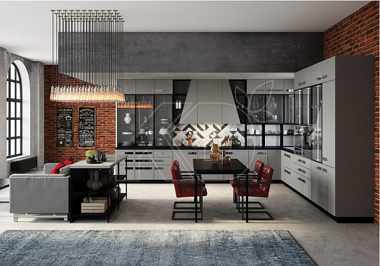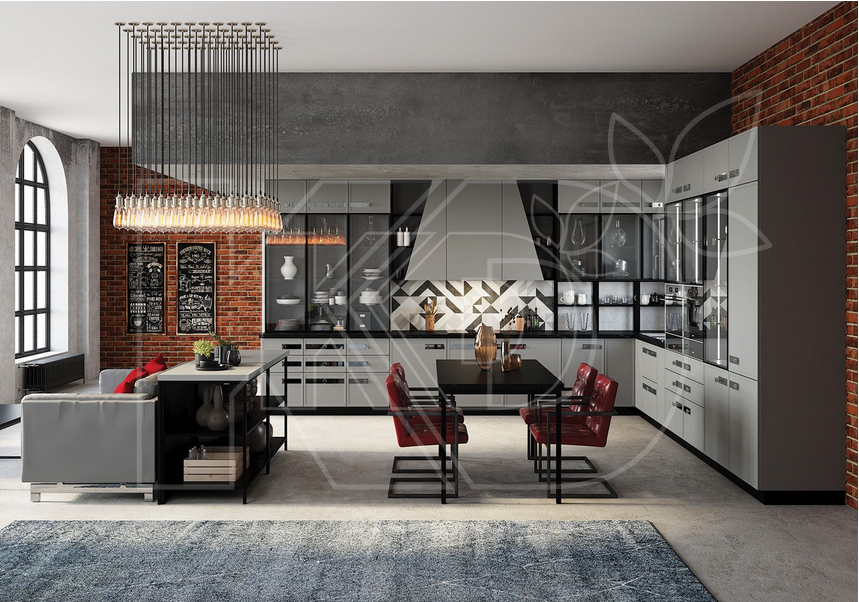 - Система освещения. Оптимальный вариант для кухни модерн – мягкий свет, равномерно освещающий все помещение. Самый удобный способ добиться такого эффекта – использовать многоуровневую систему, сформированную из точечных осветительных приборов.