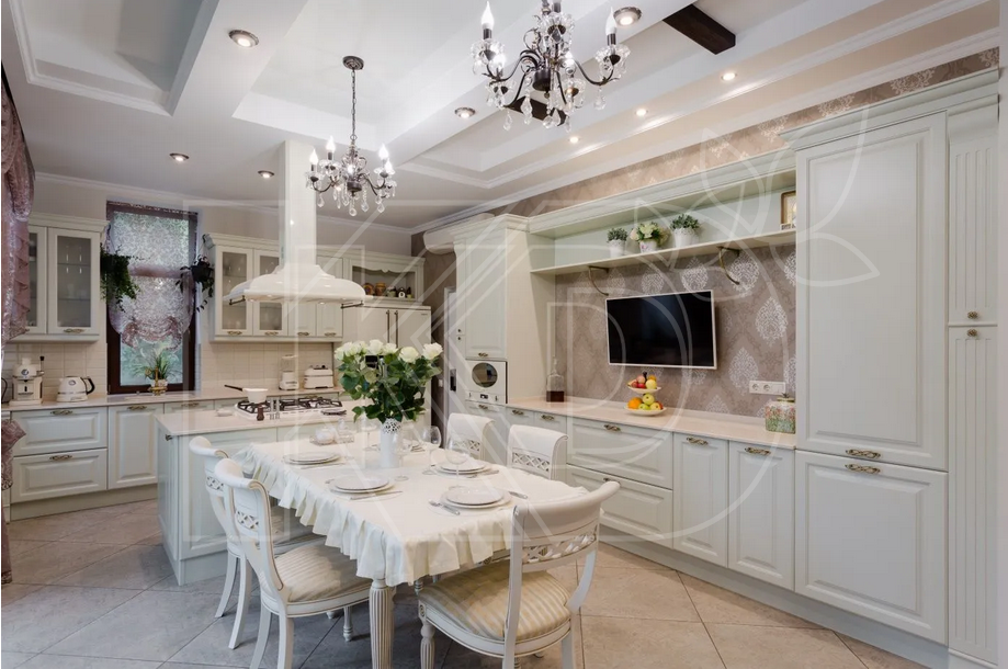 Вам нравится чувство симметрии и изысканный декор классических гарнитуров, но кажется, что такое решение смотрится слишком консервативно? В таком случае обратите внимание на неоклассику. Подобные кухни выполняют из натурального массива, шпона, экомассива, украшая их резьбой, колоннами и витражами, фурнитурой с кристаллами Swarovski. Обычно они изготовлены с менее строгим соблюдением симметрии и выглядят легкими и изящными благодаря окраске в светлые пастельные оттенки. Оригинальным вариантом станет кухонная мебель с покрытием из отражающей свет ультраглянцевой эмали – она придаст современный вид самой строгой классической кухне.