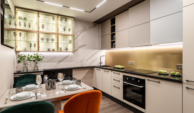 Интерьеры в светлых тонах используются как в маленьких, так и в больших кухнях, в первую очередь потому, что светлые оттенки имеют неоспоримое преимущество. Они визуально расширяют пространство, отлично отражают естественный и искусственный свет. По этой причине светлый дизайн настолько популярен – он позволяет создать уникальный стиль даже в тех проектах, где сделать это достаточно сложно. Светлые кухни пользуются большой популярностью среди клиентов.