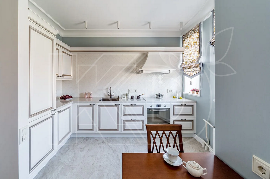 Современный дизайн белой кухни.