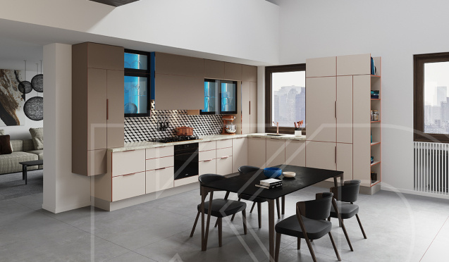 В бренда «Кухонный двор» вы сможете купить кухню со светлыми фасадами или заказать разработку дизайн-проекта кухни на заказ по индивидуальным размерам от производителя.