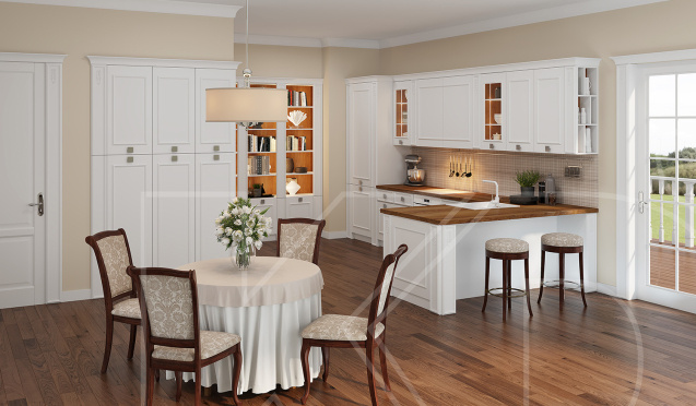 Классические кухни в светлых тонах узнаваемы по четким строгим линиям и простым формам. Кухни классик декорируют позолотой, лепниной, патиной и резными узорами.