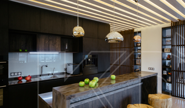 Сочетание цветов темной кухни