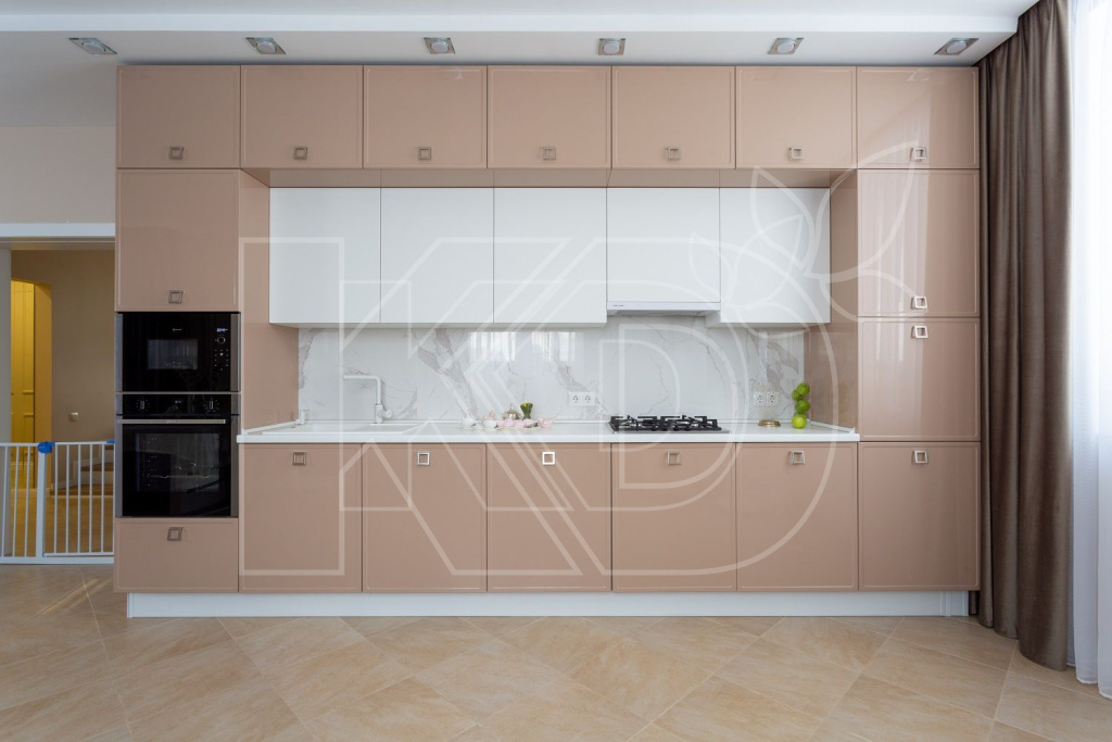 В модной палитре преобладают самые теплые оттенки – от сливочного до цвета спелой пшеницы. Помимо этого рекомендуем обратить внимание на медовые, молочные, ванильные, бисквитные тона. Гарнитур с такими фасадами сделает помещение особенно уютным.
