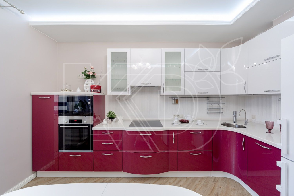 Все большую популярность приобретает кухонная мебель с радиусными фасадами. Подобные модели выглядят очень оригинально и эстетично, а отсутствие углов делает их безопасными для детей.