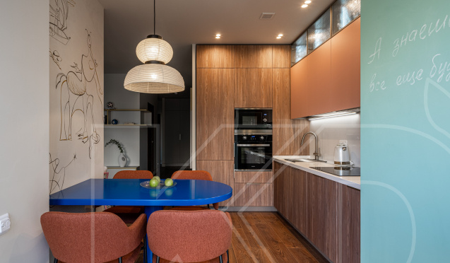 В полуостровных кухнях мебель располагают вблизи двух смежных стен, в то время как другая находится в центральной части помещения. С точки зрения цветов, наибольшей популярностью пользуются: