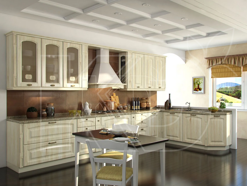 Г-образная модель универсальна, она подходит для помещений практически любой площади. Нужно сэкономить место? Обратите внимание на кухню с прямым углом. Хотите получить систему хранения, куда поместится посуда большого диаметра или кухонная техника? Удачным выбором станет просторный гарнитур со скошенным углом.