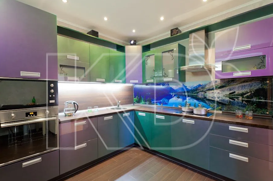 Наполнить уютом просторное помещение и создать в нем камерную обстановку поможет мебель насыщенных тонов: пихтовая, оливковая, малахитовая. Если окна квартиры выходят на северную сторону, добавить недостающее тепло поможет кухня, часть фасадов которой окрашены в жизнерадостный желтый или оранжевый оттенок. Для помещений с окнами на юг хорошим выбором станут нефритовые, мятные, серо-зеленые гарнитуры, создающие атмосферу приятной прохлады.