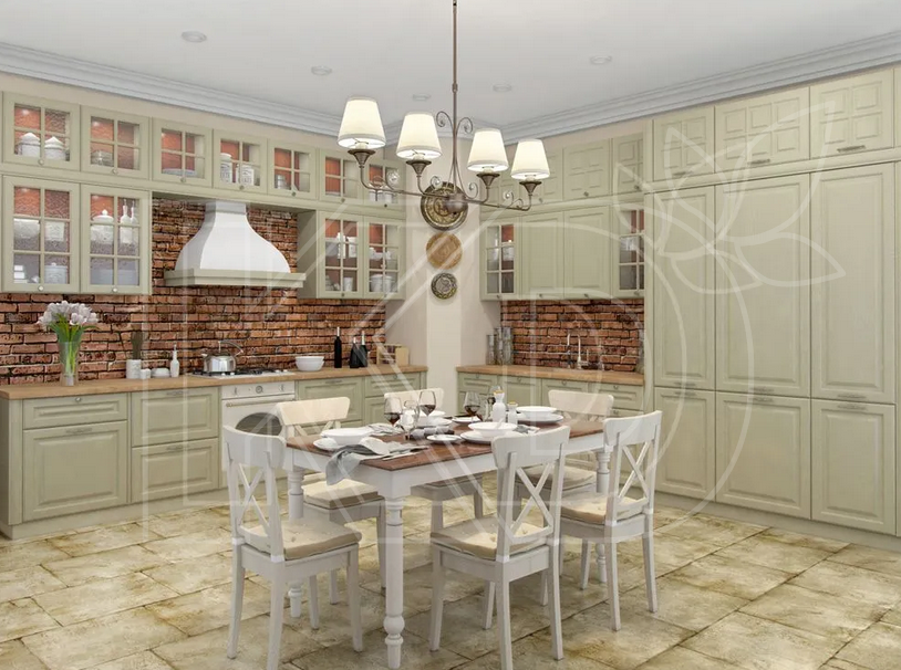 Стили Кантри и Прованс активно используют приглушенную зеленую палитру для отделки стен и мебели. Гарнитур травяного цвета удачно дополнят обои светлого нейтрального оттенка и простая деревянная мебель. «Кухонный Двор» поможет воплотить в жизнь все ваши мечты и фантазии, в нашем каталоге вы найдете удобный элегантный кухонный гарнитур для любого интерьера.