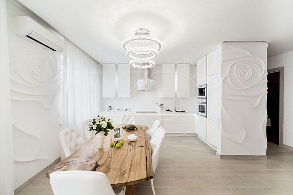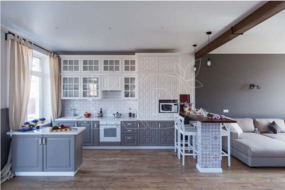 Как и угловая кухня, она подходит для помещений любого размера, различаясь по количеству модулей. Если же кухня просторная, то также можно выбрать П-образную, островную, полуостровную мебель. Часто она используется для квартир-студий или же кухонь, объединенных с гостиной или столовой, успешно осуществляя зонирование.