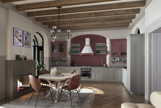 Угловая кухня позволяет замаскировать отдельные, не самые привлекательные коммуникации. Например, водопроводные трубы или вентиляционную систему.