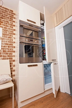 Фасады, которые отражают свет, привлекают слишком много внимания. Они уместны, если кухня располагается в отдельном помещении. Если мы оформляем кухню-гостиную, то в качестве финиша лучше выбрать матовое покрытие. Оно придаст помещению аккуратный вид.