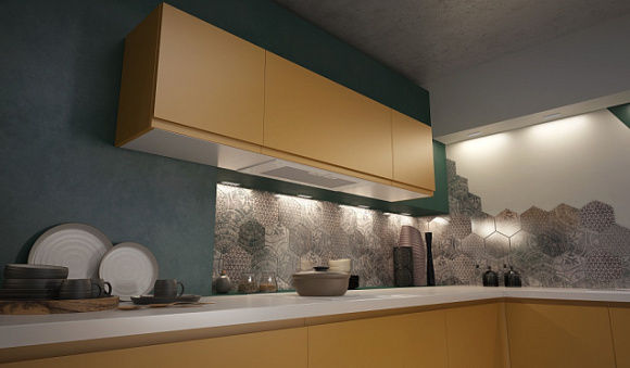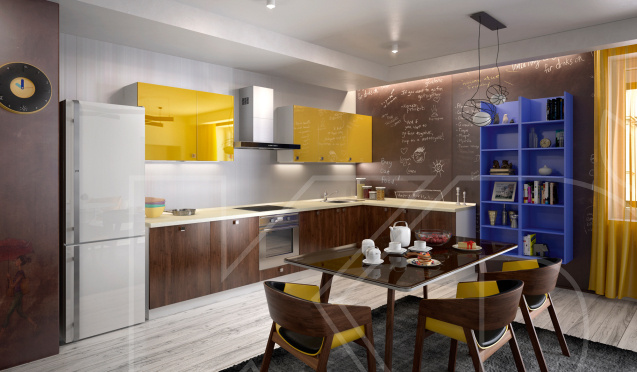 Желтый кухонный гарнитур - сочетания с другими оттенками