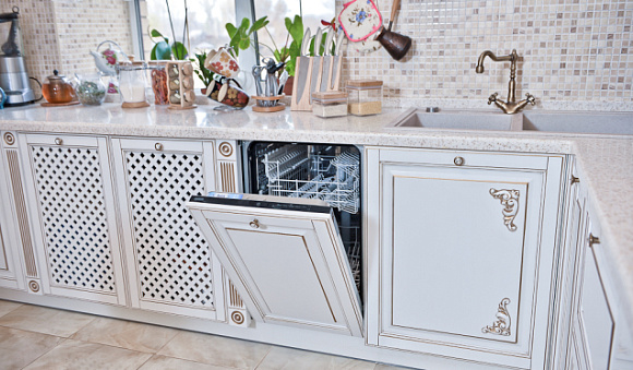Нельзя дополнять комплекты такого типа элементами серебристого цвета. Например, мойка из нержавейки и хромированные детали будут смотреться с таким гарнитуром дисгармонично. Поэтому выбирайте кухни на заказ в тон или нейтрального цвета.