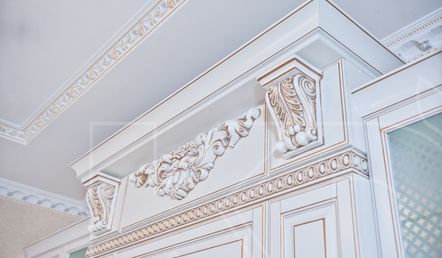 Столешницы для золотой мебели изготавливают из натурального или искусственного камня, керамики. Данные материалы отличаются высокой прочностью, подчеркивают красоту и изысканность комплектов.