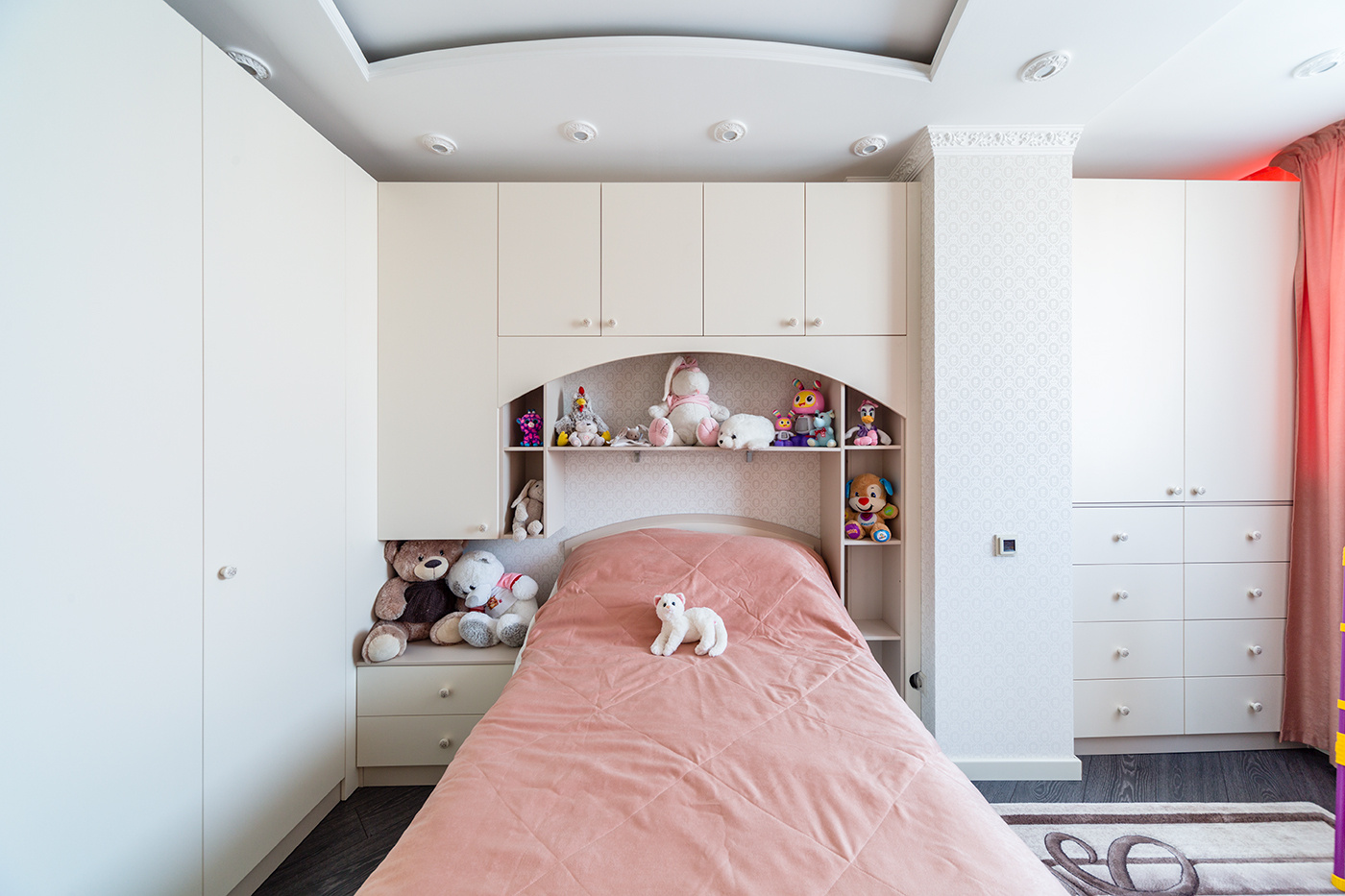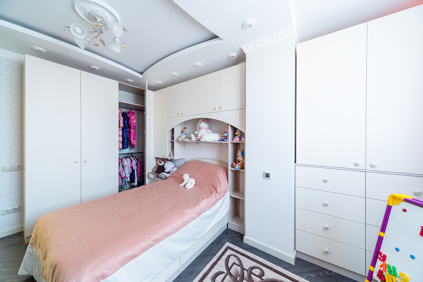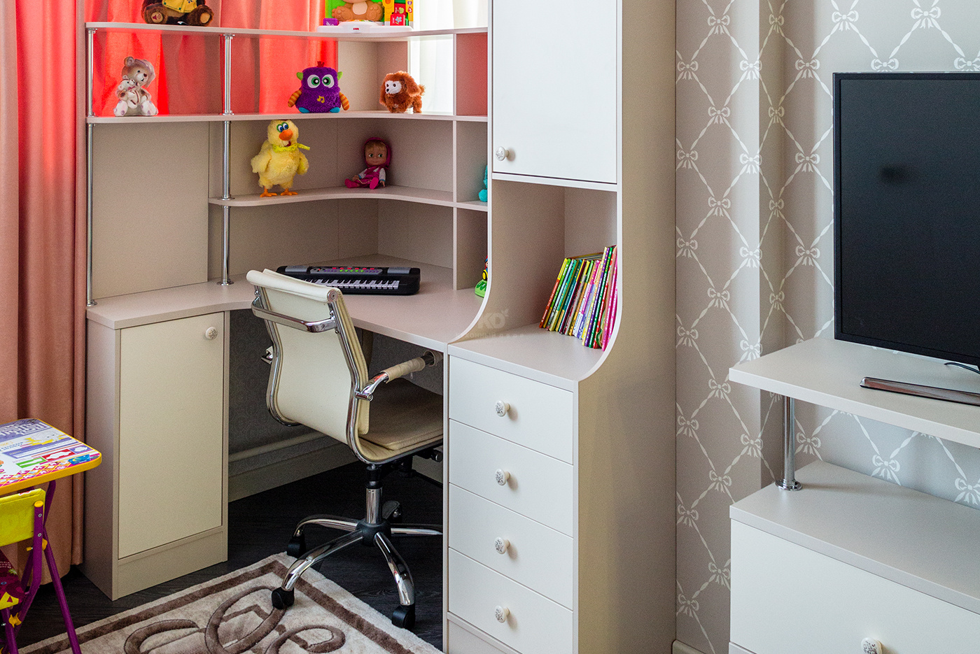 Пока Александра еще не ходит в школу, в ее детской многое нужно учесть. Должны быть мягкая уютная кроватка, место для игр и занятий, ну, и конечно же – много-много ящиков для игрушек и нарядов! «Кухонный Двор» с удовольствием взялся за обустройство интерьеров для маленькой непоседы!