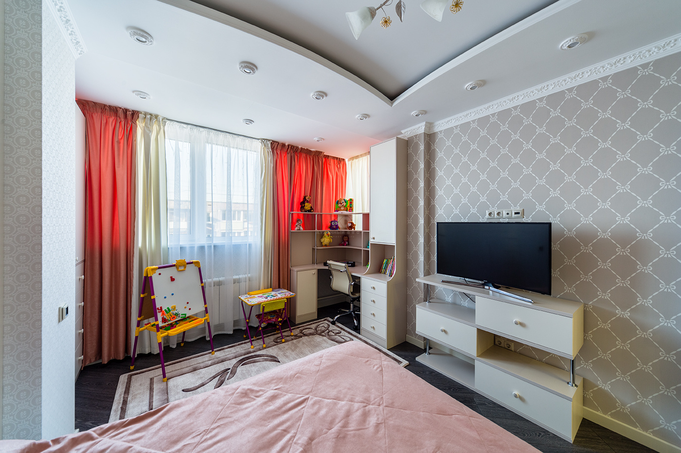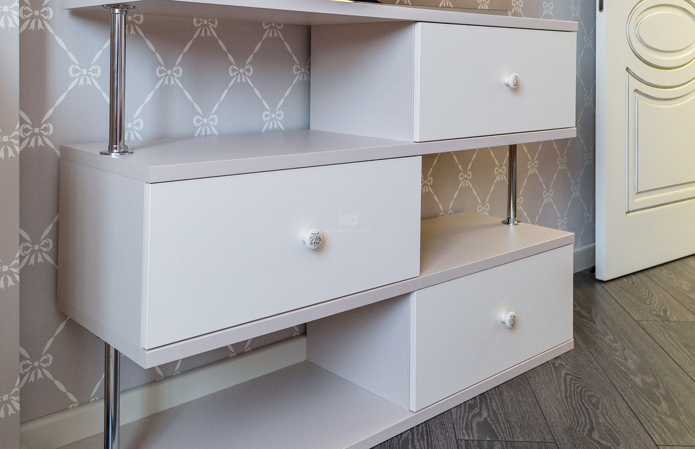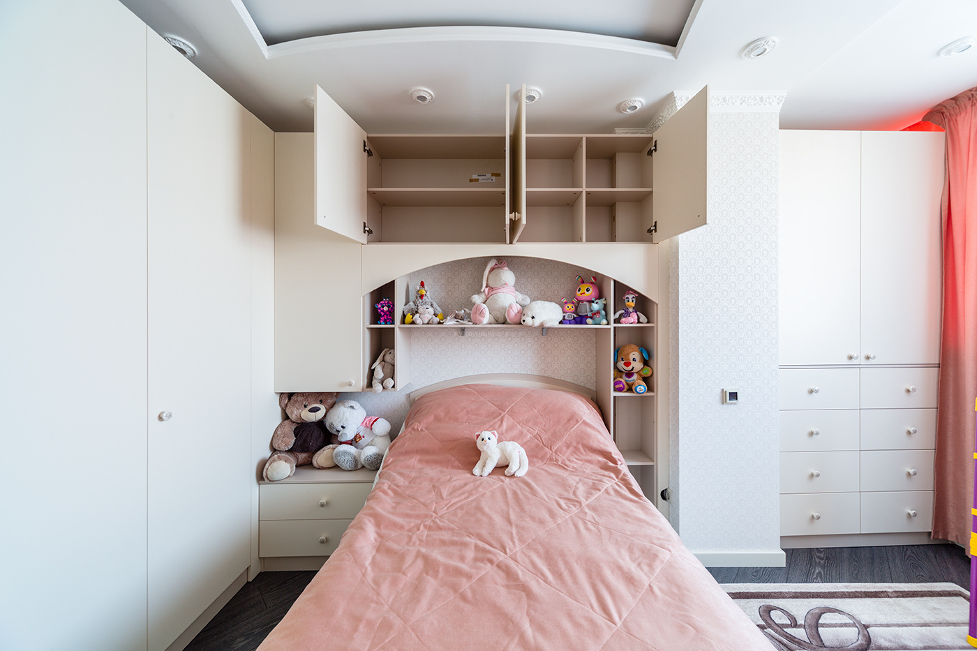 Пока Александра еще не ходит в школу, в ее детской многое нужно учесть. Должны быть мягкая уютная кроватка, место для игр и занятий, ну, и конечно же – много-много ящиков для игрушек и нарядов! «Кухонный Двор» с удовольствием взялся за обустройство интерьеров для маленькой непоседы!