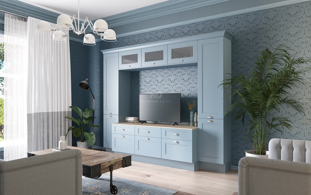 Классика вечна? Да. Но вечность не значит статичность! Гостиная «Эрика» – это совершенство классического дизайна, воплощённое с использованием современных решений. Её фасады восхитительного нежно-голубого оттенка создаются из МДФ с «дышащим» покрытием-экомембраной. Экомембрана наносится на поверхности по технологии 3D-окутывания, надёжно защищая «Эрику» и её цвет от УФ-лучей. Благодаря высоким технологиям и инновационным материалам, цвета этой гостиной годами будут сохранять первозданную яркость и глубину.