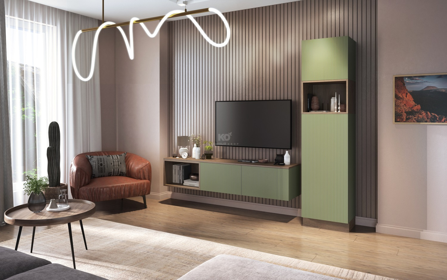 Глядя на эту модель, возникает непреодолимое желание ей владеть? Что ж, в таком случае Вас можно поздравить – это верный признак хорошего вкуса! «Ноа Плиссе» – не просто гостиная, а «дирижёр», задающий ритмику всему интерьеру. И эта «магия» рождается не только из оригинального рисунка фасадов. «Левитирующие» модули и вставки из материалов с древесной фактурой вносят свою весомую лепту, делая облик «Ноа Плиссе» ещё более интригующим.