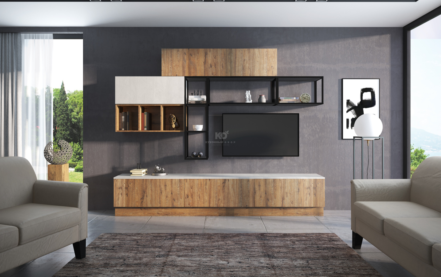 Скандинавский стиль привлекает многих. И это естественно, ведь светлые интерьеры с обилием природных фактур дарят спокойствие! Сделайте Вашу гостиную островком релакса и уюта вместе с моделью «Ноа». Она искусно комбинирует белые цвета и древесные поверхности, создавая совершенно необыкновенное настроение. Фасады «Ноа» выполнены из экомассива, который полностью имитирует фактуру дерева. Поверхности термоструктурированы, поэтому не только выглядят как древесина, но и тактильно идентичны ей. И созерцание, и прикосновения к этой гостиной принесут Вам равное удовольствие!