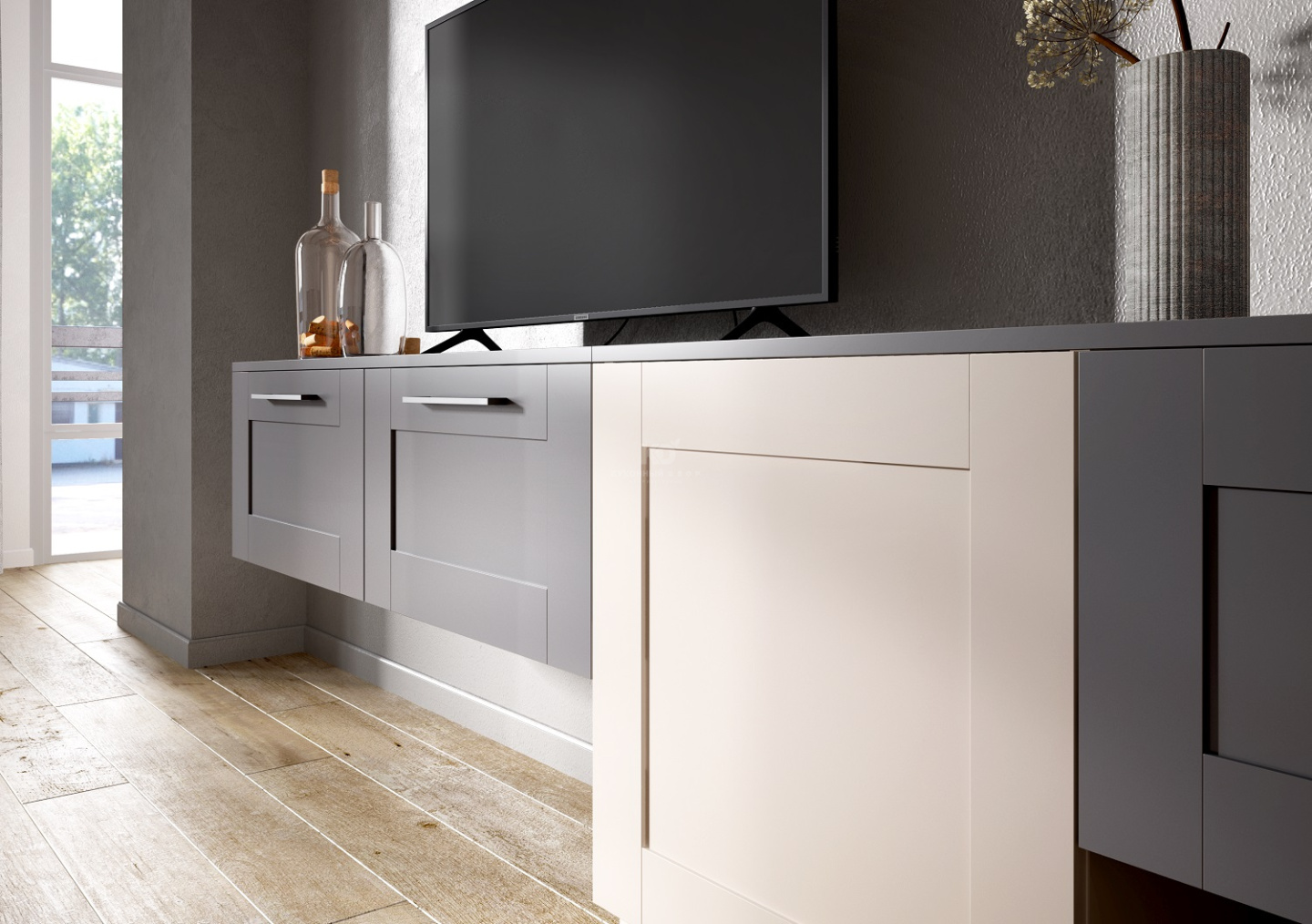 В стоимость включены: корпуса ЛДСП Egger (Германия), фасады выбранной категории, ящики, петли, подъемники, покрытие декоративное, ручки №2, цоколь Volpato (Италия), ножки, навесная система.