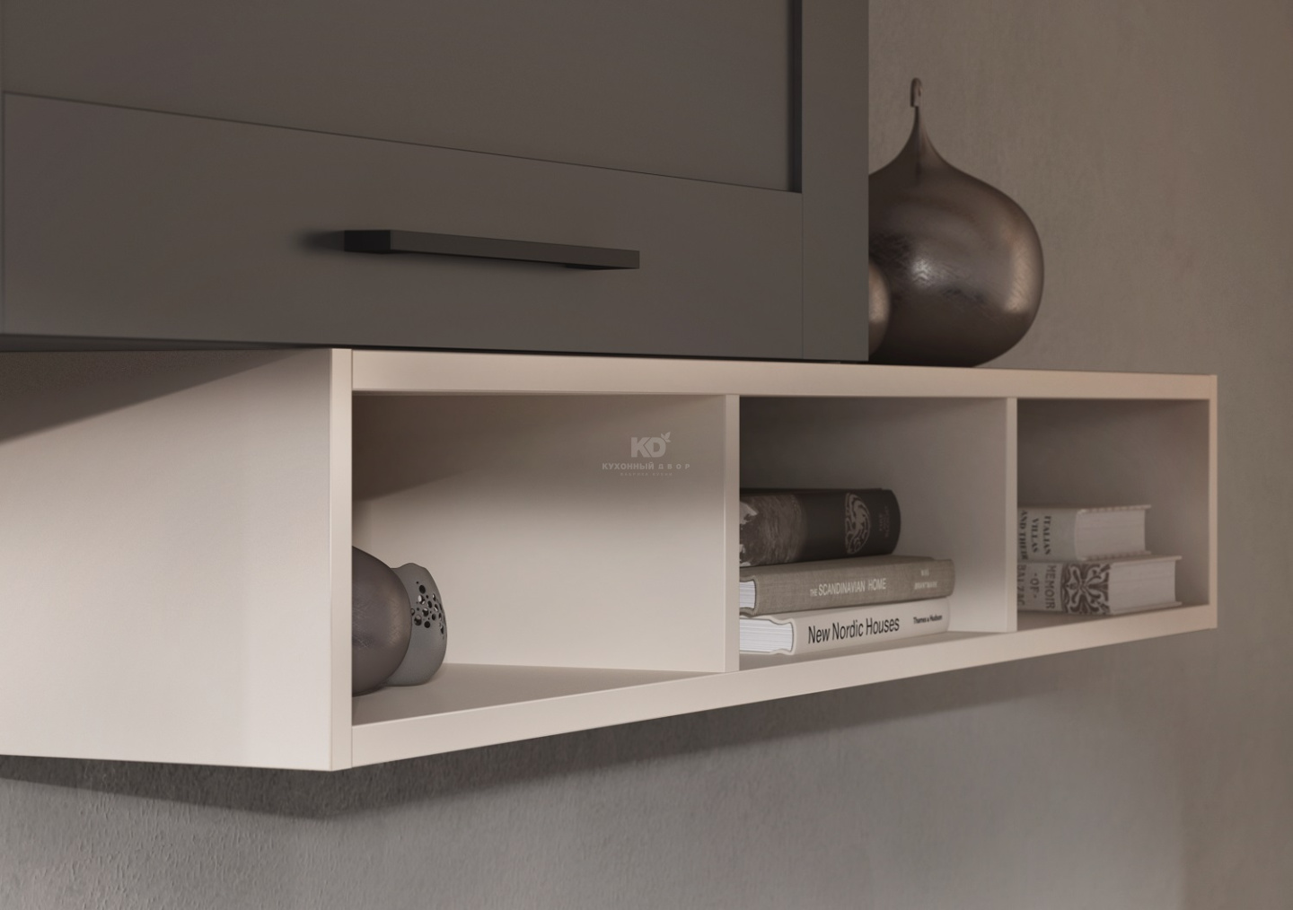 - Сбалансированным сочетанием открытых полок и закрытых зон.
