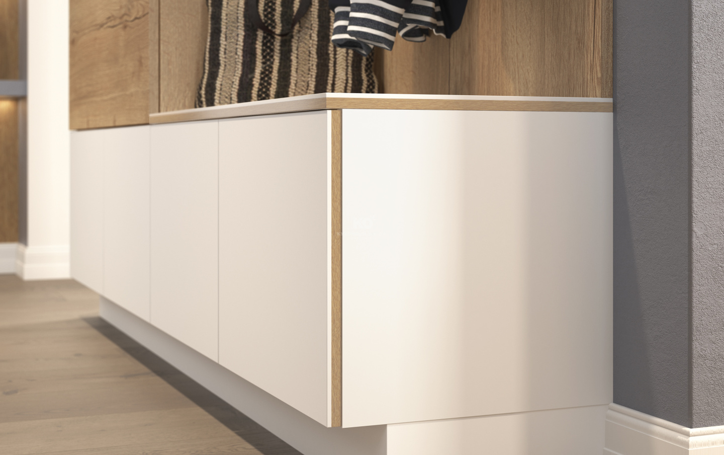 Именно такие чувства прямо с порога пробуждает «Ханна Вуд». В этой прихожей прекрасно сочетаются естественные фактуры и светлые поверхности с «бархатистым» покрытием «Экстра Тач Матт». Эта комбинация создаёт ту самую атмосферу «скандинавского» уюта, в котором дышится легко, а на лице так и норовит появиться лёгкая улыбка.