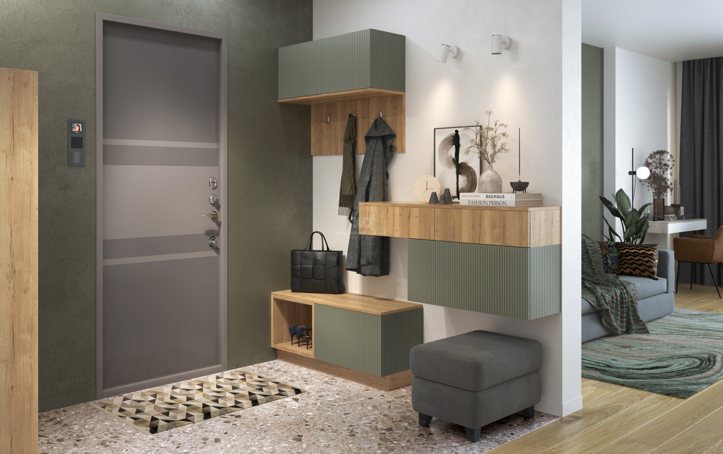 Кстати, все фасады «Ноа Плиссе» создаются из лёгкого, долговечного и прочного композита под названием «экомассив». Тренд на экологичность для этой прихожей – не пустой звук!
