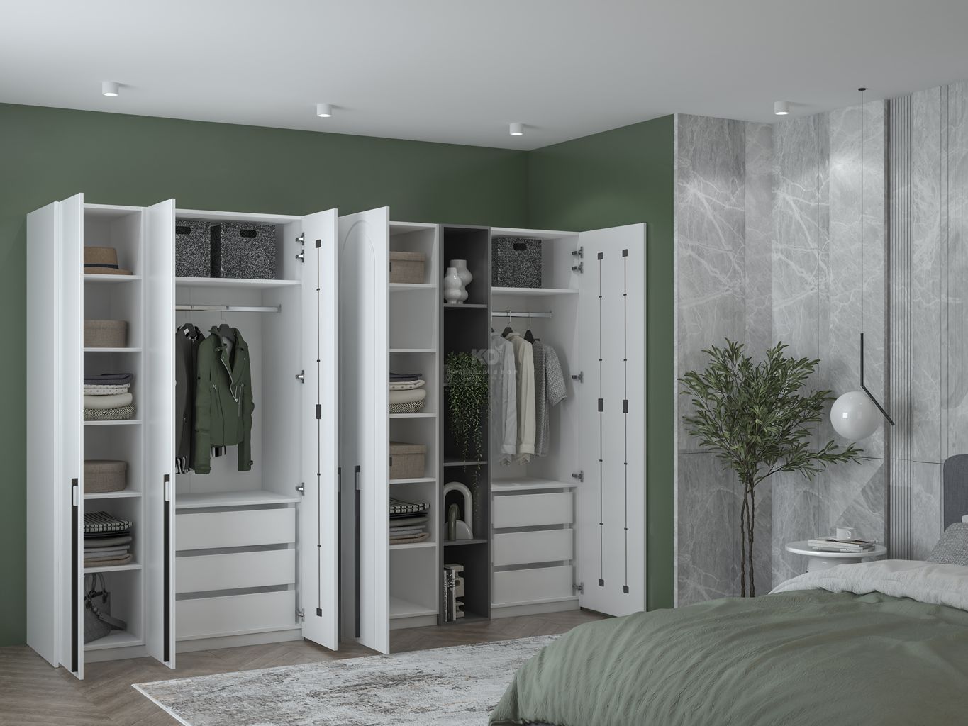 Благодаря продуманной модульной системе, шкаф органично впишется как в классический, так и в контемпорари интерьер, сохранив порядок и эстетику. Это не просто место для хранения — это часть единой, продуманной истории дома, где каждая деталь работает на атмосферу.