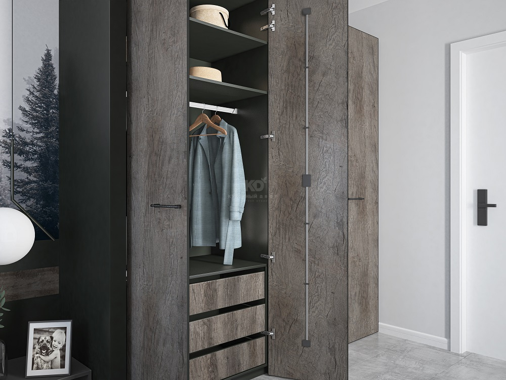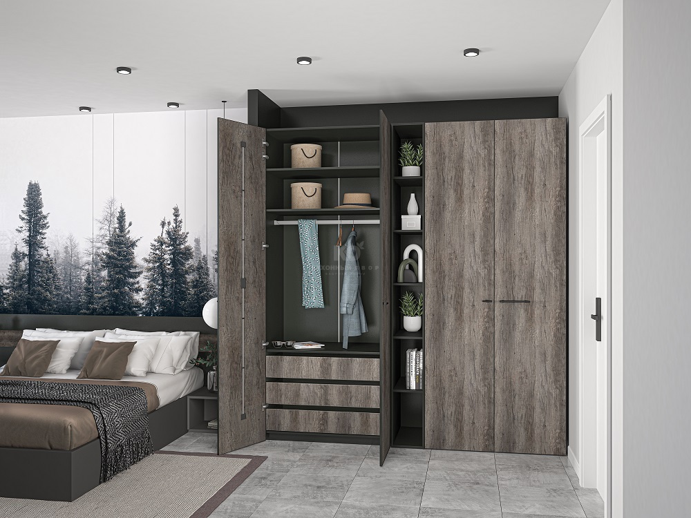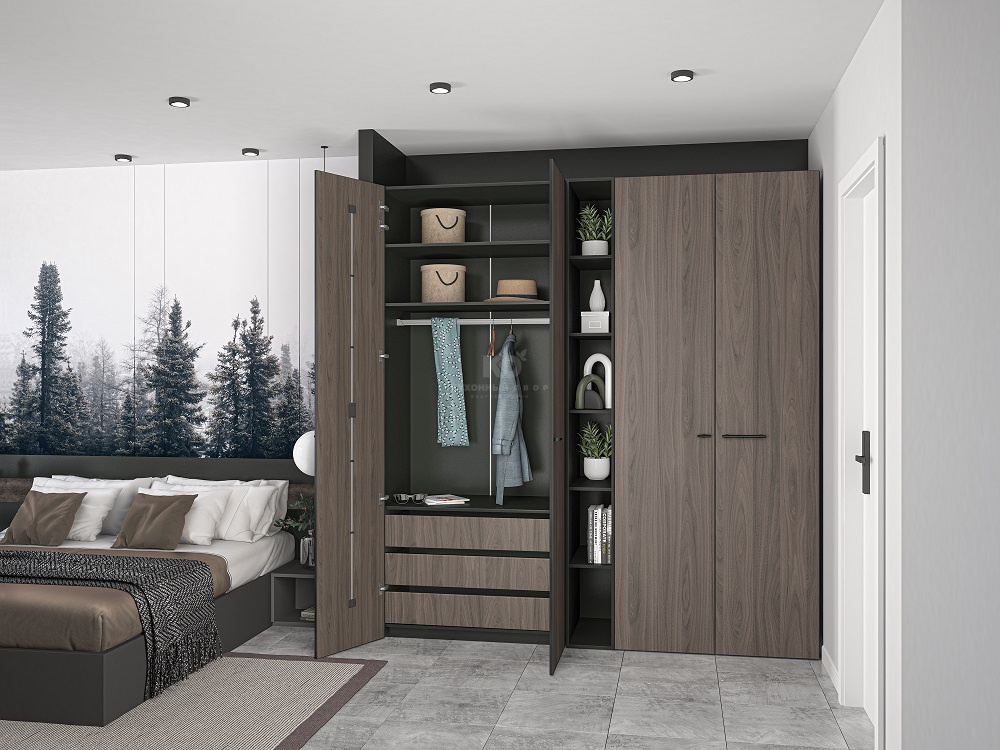 Шкаф покоряет не только обликом, но и функционалом. Так, глухие зоны здесь могут чередоваться с открытыми элементами, которые отлично подходят для хранения книг и предметов декора. А внутреннее пространство можно организовать таким образом, чтобы с комфортом хранить вещи любого размера – от мелочей до коробок, обуви и верхней одежды.