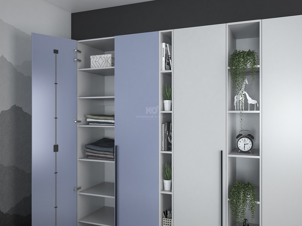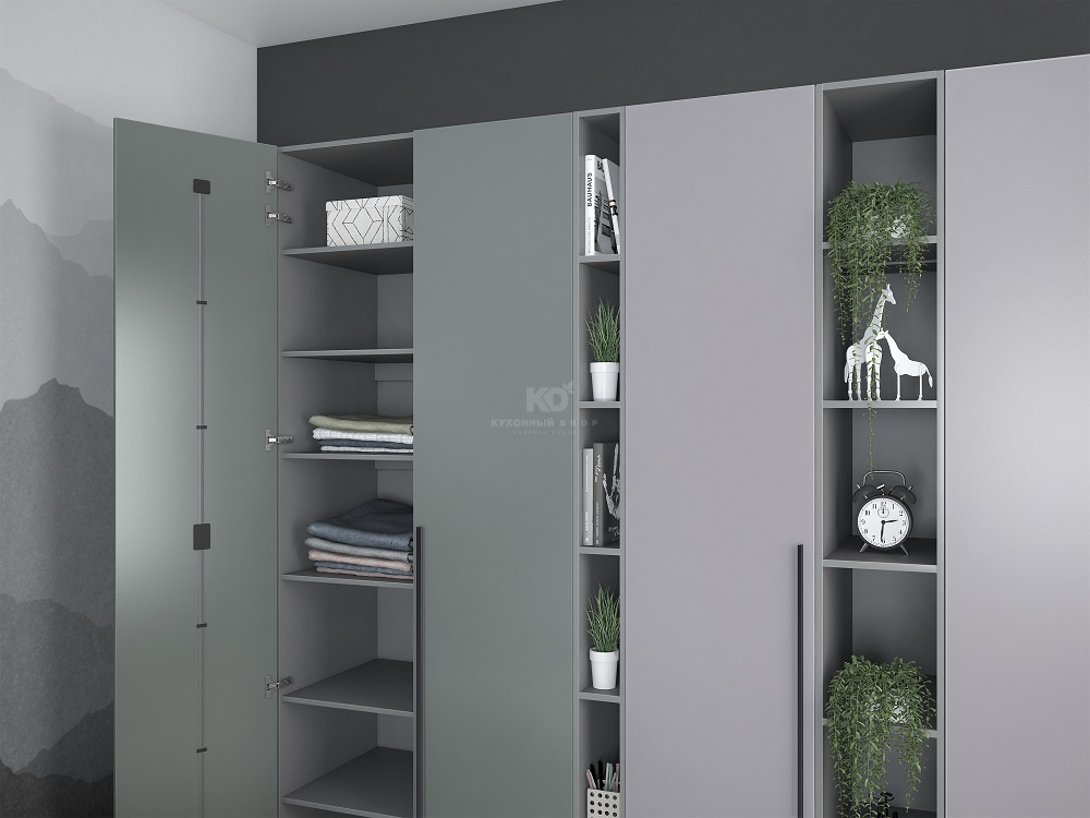Открытые секции добавляют шкафу визуальной лёгкости — здесь удобно расставить керамику, свечи или журналы, превратив мебель в часть вашей личной истории.
