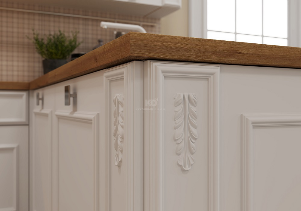 На первый взгляд эта кухня представляет собой чистейшую классическую модель без намёка на современный стиль. Ключевая фраза здесь: «на первый взгляд». Да, «Астрид» имеет множество черт мебели из былых эпох. Это и декоративные карнизы, и элегантные пилястры, и шикарные фасады, украшенные утончёнными молдингами, и сдержанная, но притягивающая взгляды лицевая фурнитура…