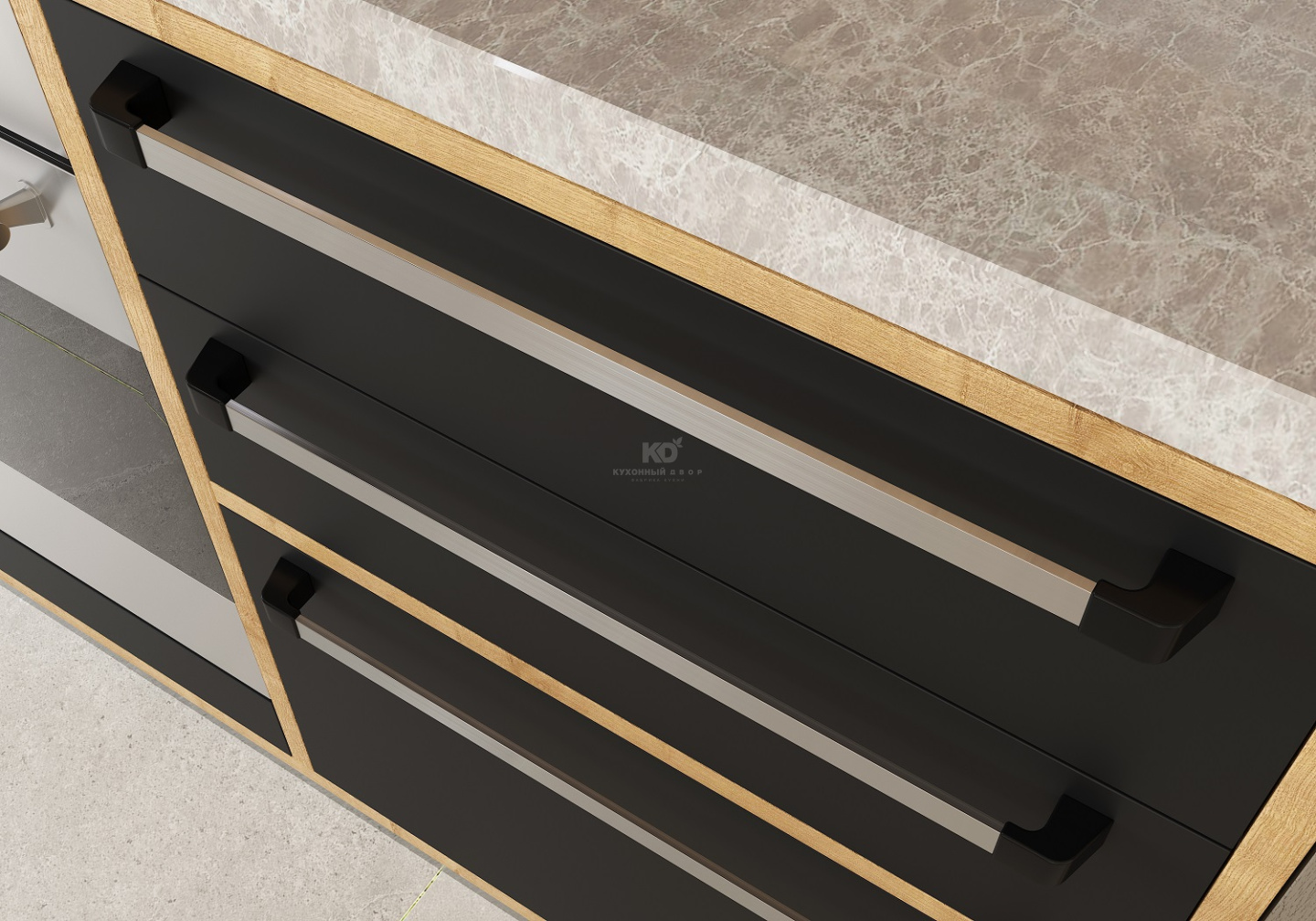 Обращаем Ваше внимание, что цена за погонный метр включает в себя: фасады выбранной категории, влагостойкую столешницу HPL (Германия) высокой прочности, корпуса ЛДСП Egger (Германия) с кромкой ABS, ящики с доводчиками , петли с доводчиками, ручки, алюминиевый поддон в стол под мойку, сушка (Италия), цоколь Volpato (Италия). Из расчета в размере 2400 мм.