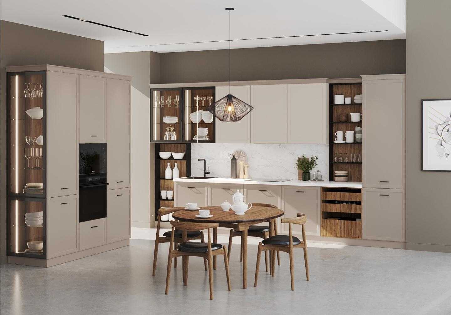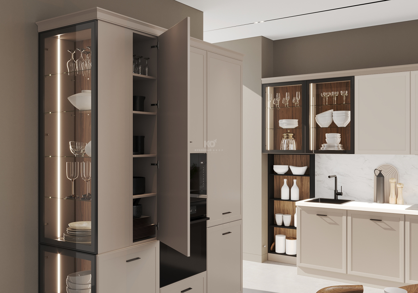 Каждое утро на этой кухне будет добрым! Ведь даже посуда, расставленная в шкафах со стеклянными дверцами, была подобрана вами с особой тщательностью и любовью. И вы вновь убеждаетесь в том, что, отдав предпочтение модели «Рикарда Ваниль», вы сделали правильный выбор.