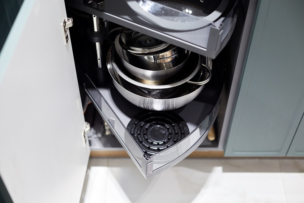 2. Эргономичность. Кухня выстроена П-образно и с учётом соблюдения правил «рабочего треугольника». Готовить на ней удобно, а обилие современных аксессуаров и мощной техники делает процесс кулинарного творчества невероятно комфортным!