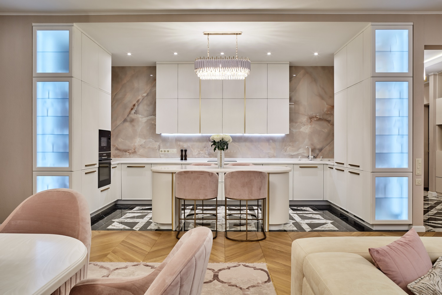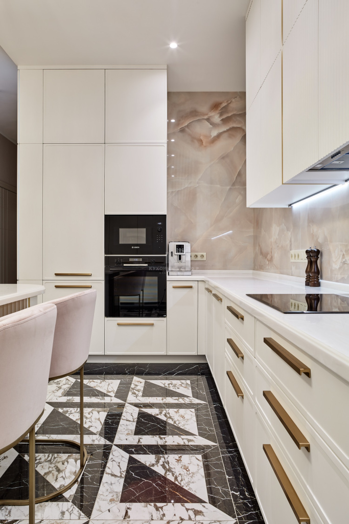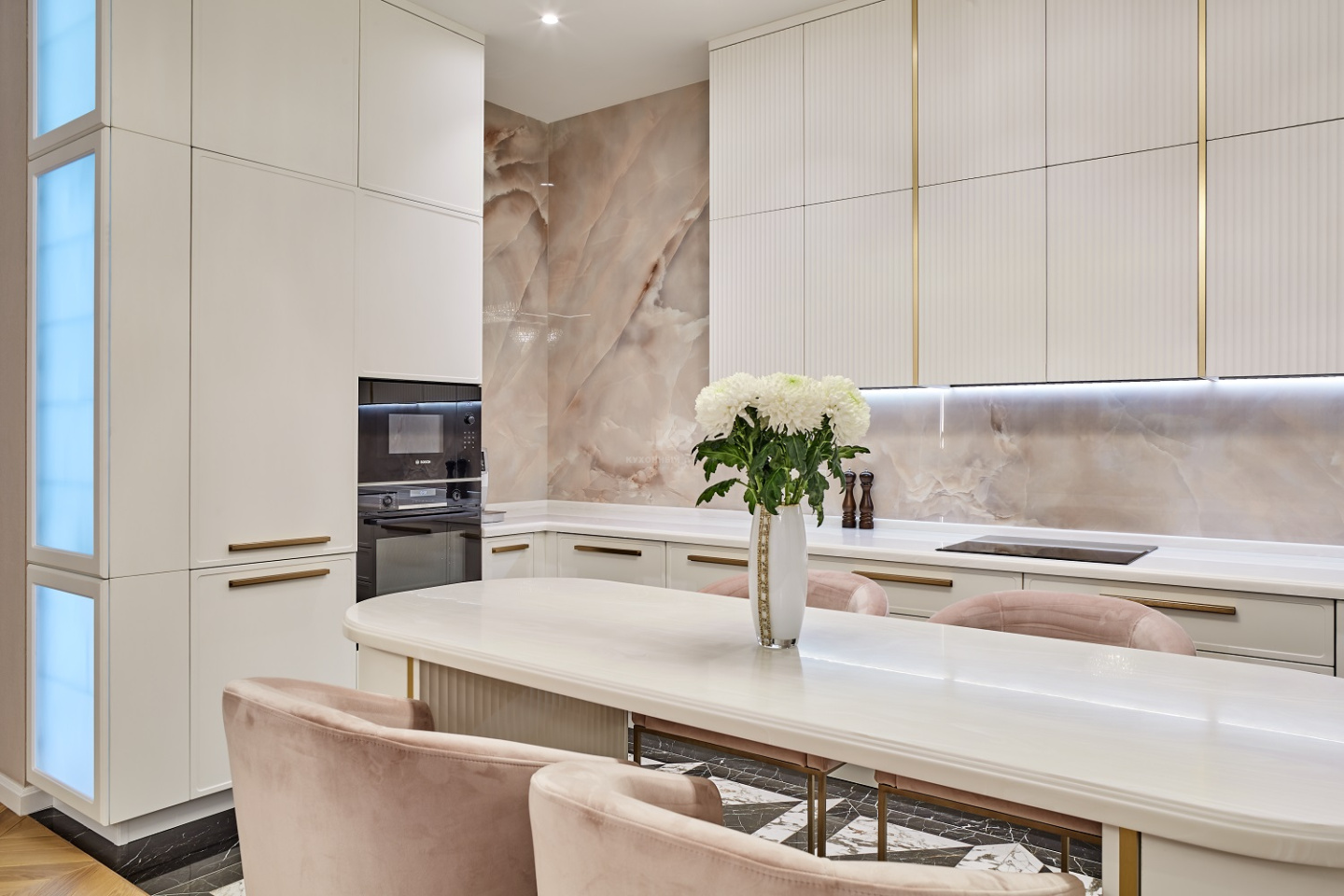 Чтобы достичь совершенства, нужно ставить максимально высокие цели. У «Джейн Вертикаль» это стремление заложено в самом имени! Перед вами роскошный, поистине королевский проект, изготовленный для одной из элитных квартир в центре Москвы. Дизайнеры «KD-Lab» получили карт-бланш на создание максимально комфортабельного гарнитура с островом. Оцените плоды их стараний!