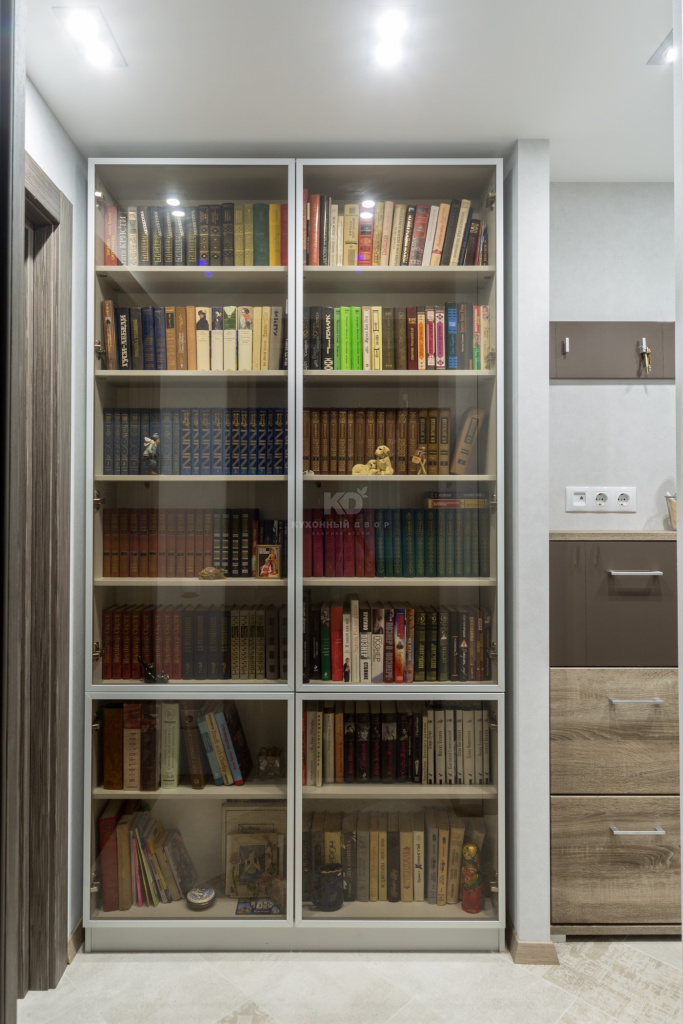 Наша новая клиентка - мама двух прекрасных и уже взрослых дочерей решила сделать ремонт во всей квартире. Начав с кухни, для которой в бренда «Кухонный Двор» единогласно был выбран гарнитур "Эмма", хозяйка заказала мебель для спальни и библиотеки. Впрочем, обо всем по порядку. Кухня в квартире небольшая, но светлая, и Лене Николаевне хотелось подчеркнуть все достоинства интерьера. Компактная и максимально вместительная «Эмма» стала идеальным выбором дл интерьера кухни. Индивидуальная особенность гарнитура – антресоли, которые стали настоящим трендом современной мебельной моды. Здесь все продумано до мелочей и подчинено законам эргономики: дверцы оснащены современными, безопасными и бесшумными механизмами открывания, а ниши, шкафы и полочки – профессиональными местами хранения. Бытовая техника находится за фасадами, выполненными из современного MDF. Богатая семейная библиотека тоже попала в надежные объятия качественной корпусной мебели «Кухонный Двор». Мебель для прикроватной зоны спальни хозяйка тоже выбрала у нас: получилась стильная и динамичная композиция лаконичных ящиков. «Я очень довольна всем – мебелью, качеством и скоростью обслуживания. Рада, что мебель в нашей квартире стильная, надежная и очень красивая!»