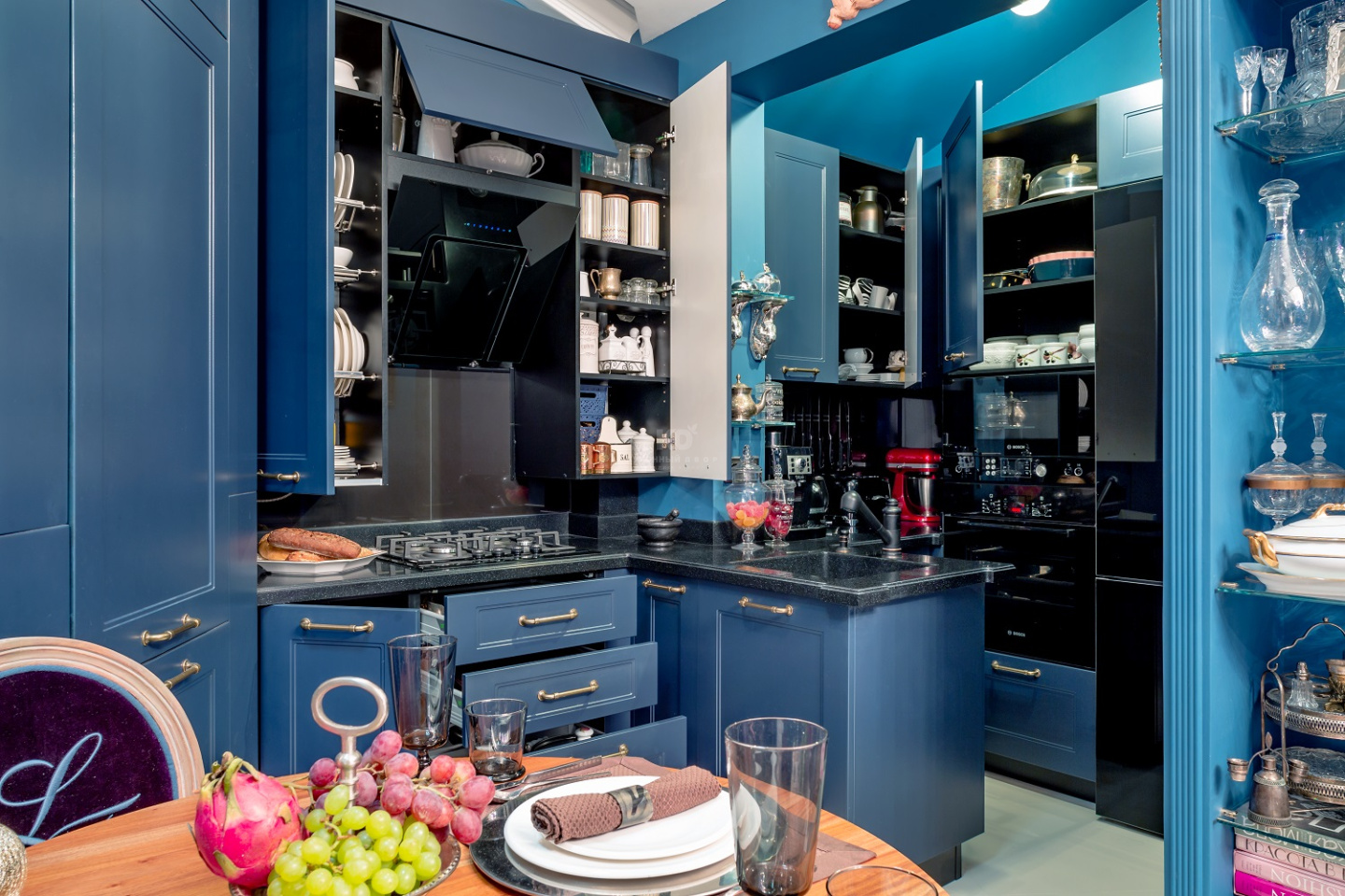 Черты «Эрики» академичны, а техника – футуристична! Мощная вытяжка в стиле «модерн», СВЧ, духовой шкаф и великолепный холодильник с чёрной зеркальной поверхностью создают одновременно и контраст, и гармонию. А грамотное зонирование позволяет хозяйке готовить легко! И в этом главная прелесть проекта! Чтобы создать произведение искусства, нужны лучшие инструменты. «Эрика» от КД и Елены Ленской – прекрасный инструмент для кулинарного творчества!