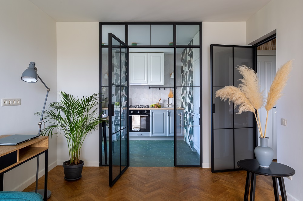 «Катарина» выглядит удивительно легко ещё и благодаря грамотному зонированию. Так, встроенный холодильник и высокий пенал здесь расположены отдельно и «утоплены» в стену. Такое решение значительно экономит место и при этом предоставляет хозяйке массу внутреннего пространства для хранения продуктов. В итоге «Катарина», сохранив фирменную «воздушность», получилась невероятно вместительной.