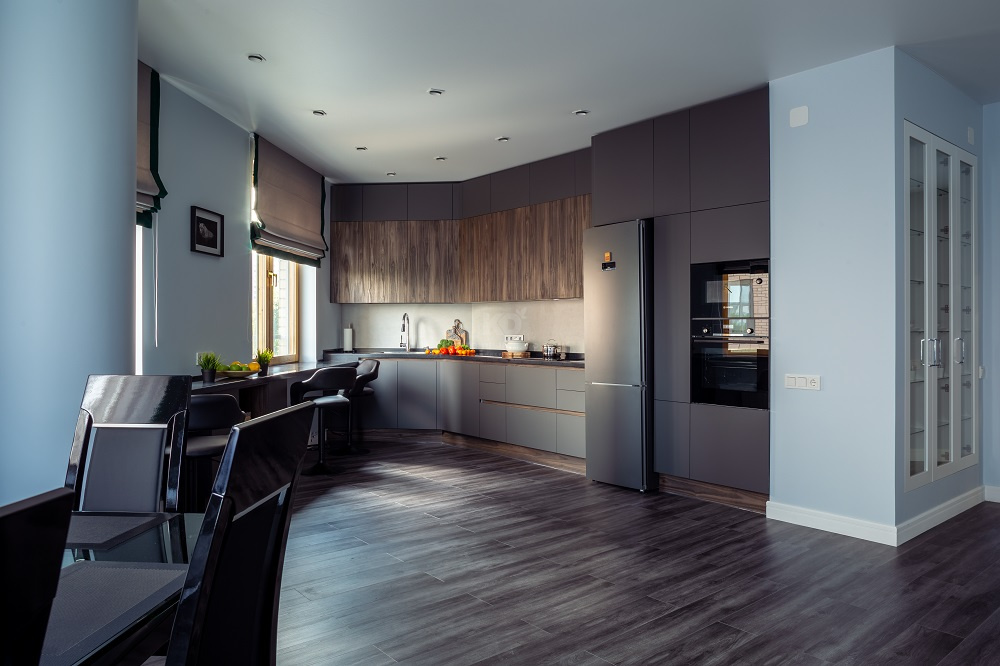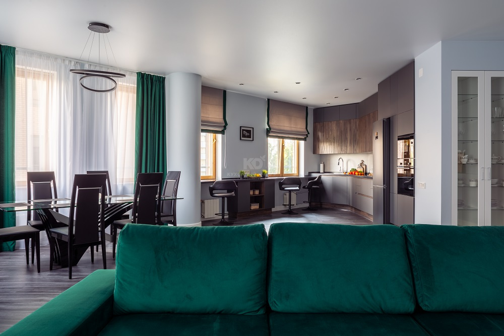 Некоторые проекты требуют от дизайнеров повышенного внимания к деталям и особого мастерства. Эта «Ханна Натив + Ноа Павловния» – как раз такой случай! Ей предстояло украсить помещение сложной формы, так что у специалистов «KD-Lab» было широкое поле для творчества. В итоге получилась стильная и современная кухня-гостиная!