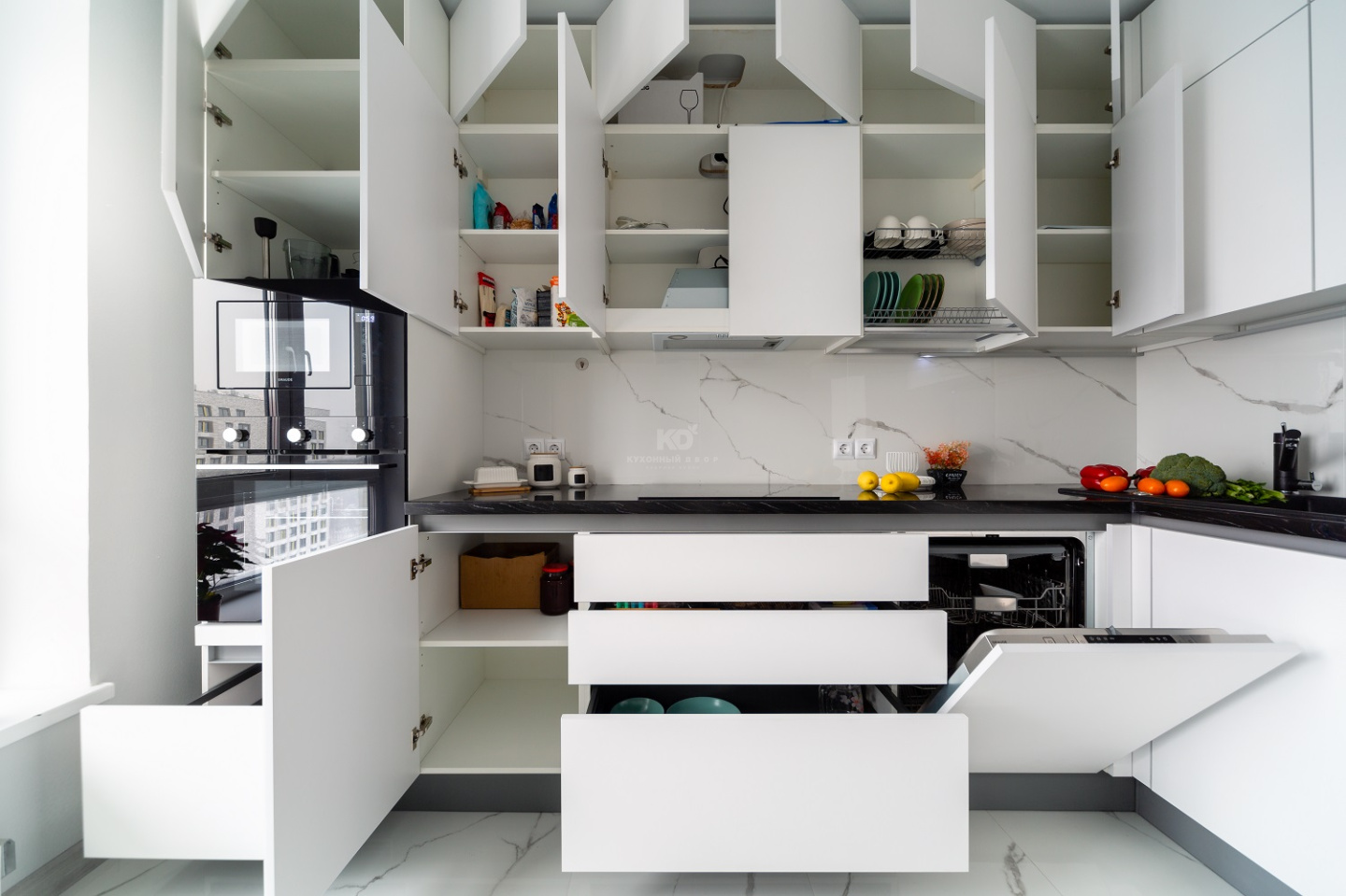 Большое окно, большое пространство и большое желание быть «на стиле»… Неплохой набор параметров для создания кухни мечты! Семья Турсуновых искала такую кухню сразу у трёх производителей, но в итоге остановилась на бренда «Кухонный Двор». И не зря, ведь с нами хозяевам крупно повезло! Насколько крупно? На 100 000 рублей! Именно с такой скидкой Сергей и Виолетта Турсуновы получили свою «Ханну Натив SL» в рамках юбилейной акции «Дарим кухни» от КД. Что ж, давайте познакомимся с их проектом поближе.