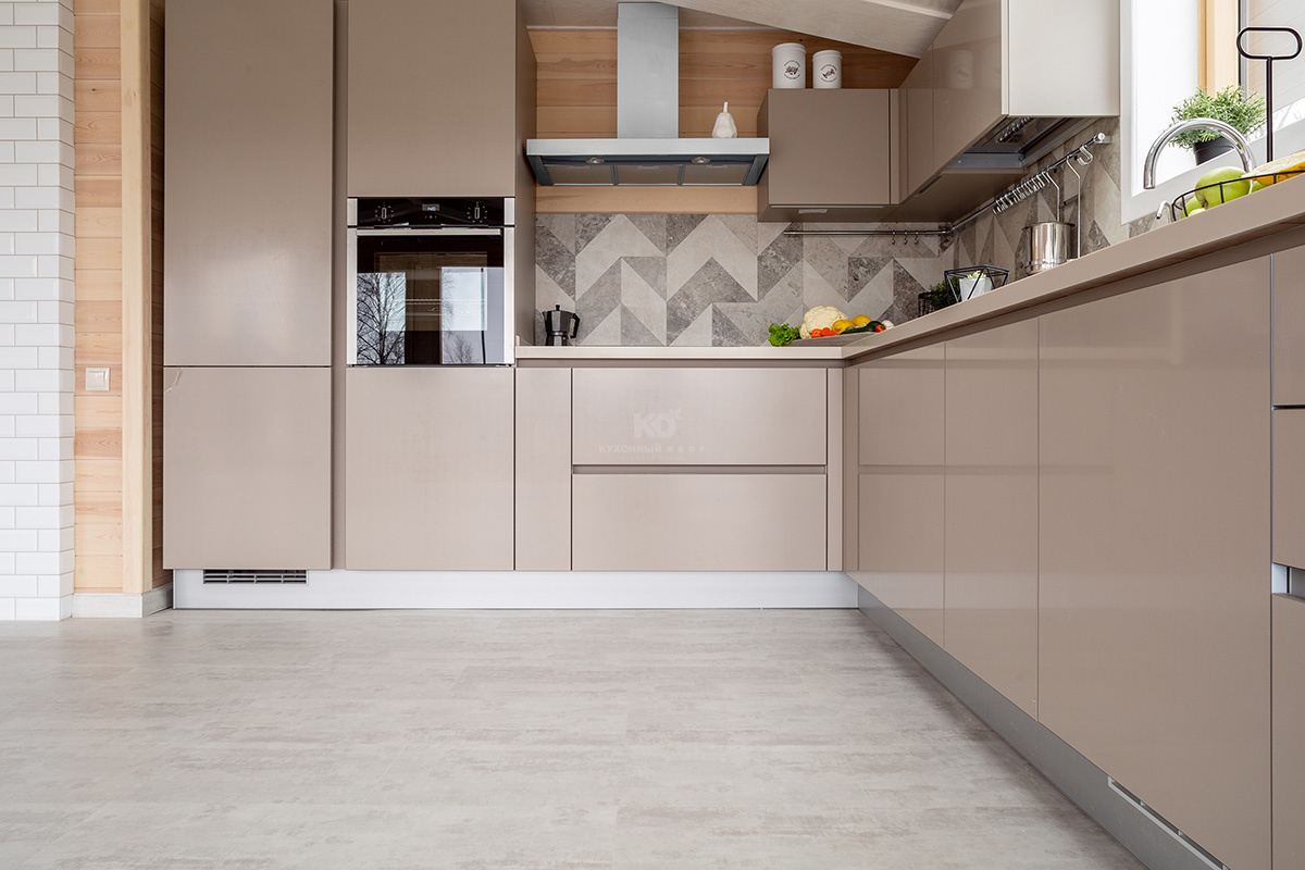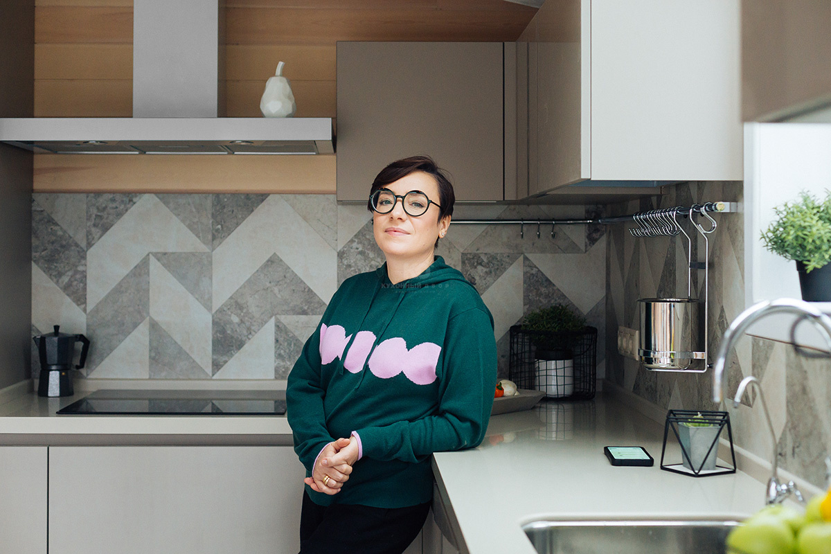 Здесь использована невероятно стильная комбинация бархатистых поверхностей «Extra Touch Matt» и системы открывания фасадов без ручек «Space Line». На этом сочетании основан уникальный образ кухни: лаконичный, сдержанный, и в то же время дружелюбный. Матовые поверхности «Ханны Натив» пробуждают желание прикасаться к ним снова и снова. Делать это можно без опаски, ведь фасады «Extra Touch Matt» устойчивы к загрязнениям и неприхотливы в уходе. Очень полезные качества, особенно когда в доме живёт трое детей!