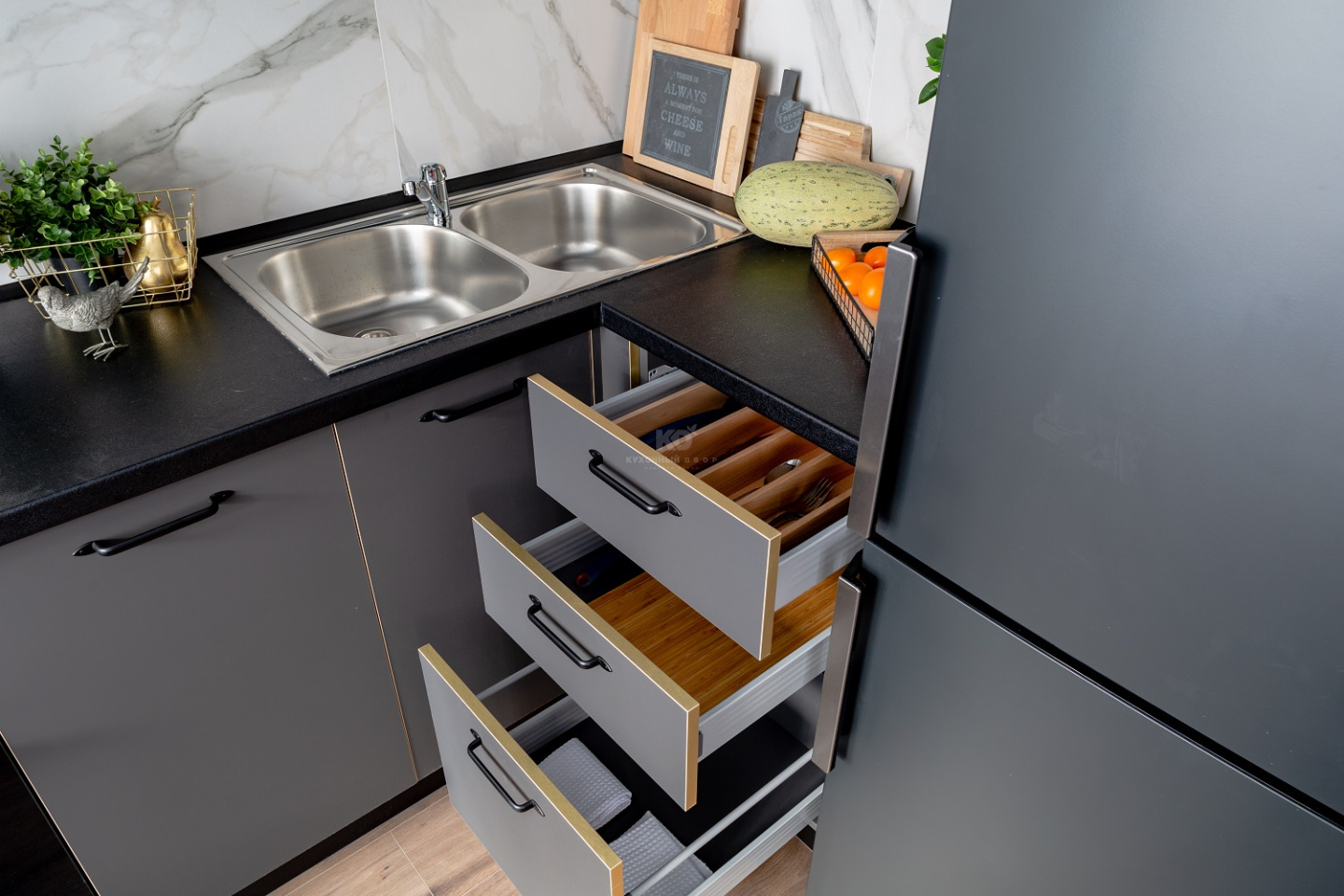 Внешность на высшем уровне, равно как и внутреннее оснащение! У «Ханный Стил» есть всё, чего ждут от современной кухни. Модель оснащена холодильником, индукционной варочной панелью, скрытой вытяжкой, духовым шкафом, посудомоечной машиной, а также множеством полезных аксессуаров и систем хранения. При всей своей компактности, «Ханна Стил» обладает невероятным функционалом и впечатляющей эргономикой. А это именно то, что нужно для стильного и современного дома!