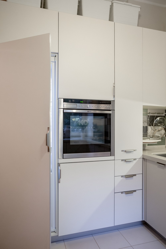Теперь на «звёздной» кухне красуется модель «Ханна Стил» с великолепными бархатистыми фасадами «Extra Touch Matt». Материал этих фасадов – настоящий подарок для деятельной, занятой и энергичной хозяйки! Во-первых, он очень устойчив к любым видам повреждений. Во-вторых, нет нужды в постоянном уходе, так как на фасадах не остается отпечатков. Ну, и в третьих, поверхности «Extra Touch Matt» просто красивы! К их бархатистым поверхностям так и хочется прикасаться!